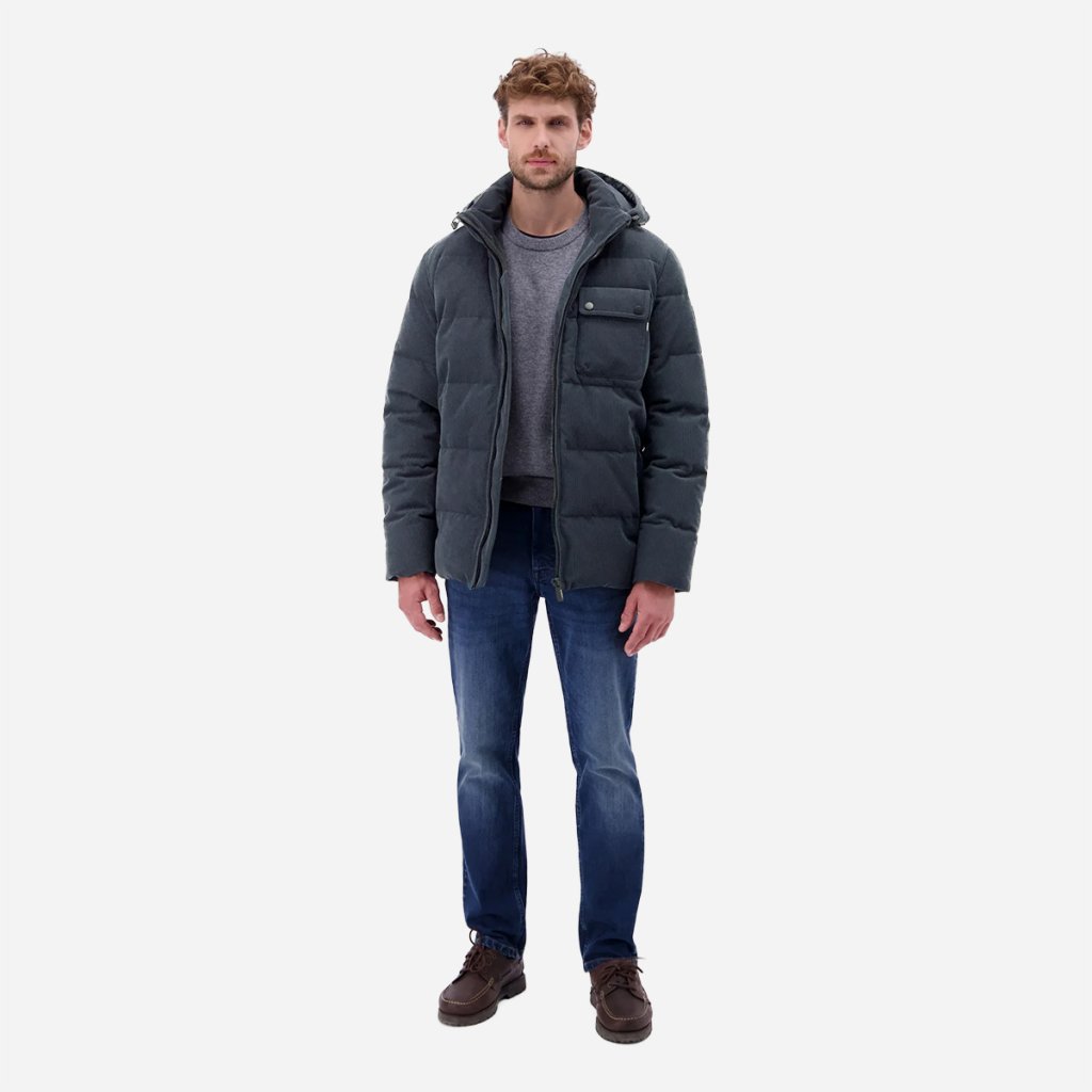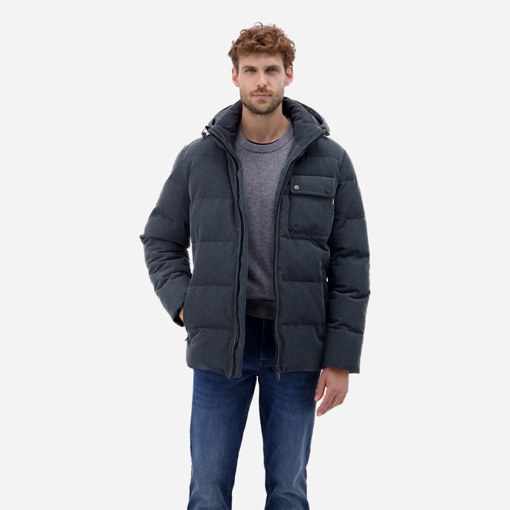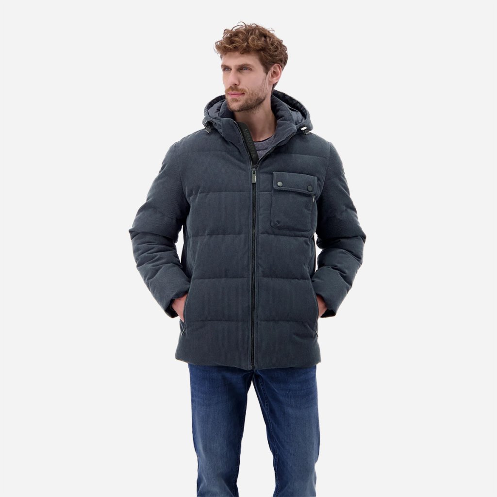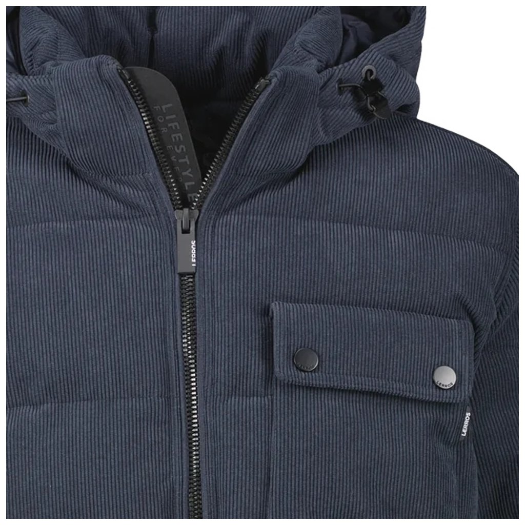 Pánska bunda LERROS v prešívanom dizajne a corduroy (menčestrovom) vzhľade ponúka ideálne spojenie štýlu a praktickej funkčnosti. Vďaka vetru a vodeodolným vlastnostiam vás ochráni pred nepriazňou počasia, zatiaľ čo priedušný materiál zabezpečí komfort bez prehrievania.