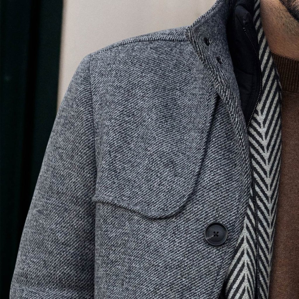 Odnímateľná vnútorná vesta s rebrovaným golierom poskytuje dodatočné zateplenie počas chladných dní, čo z neho robí ideálny kabát pre premenlivé počasie. Detail v podobe „gun flap“ prekladu na ramene dodáva kabátu jemný britský nádych a zvýrazňuje jeho štýlový charakter.