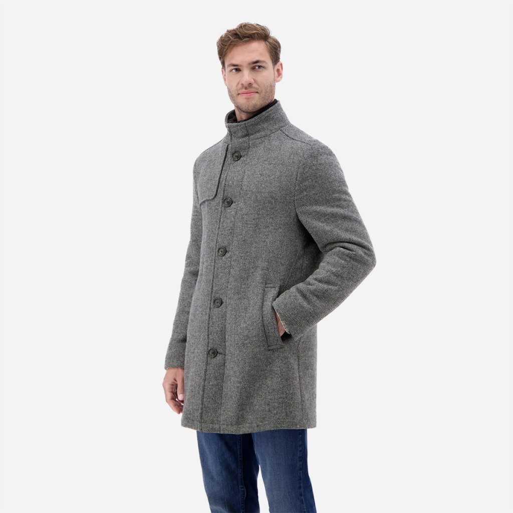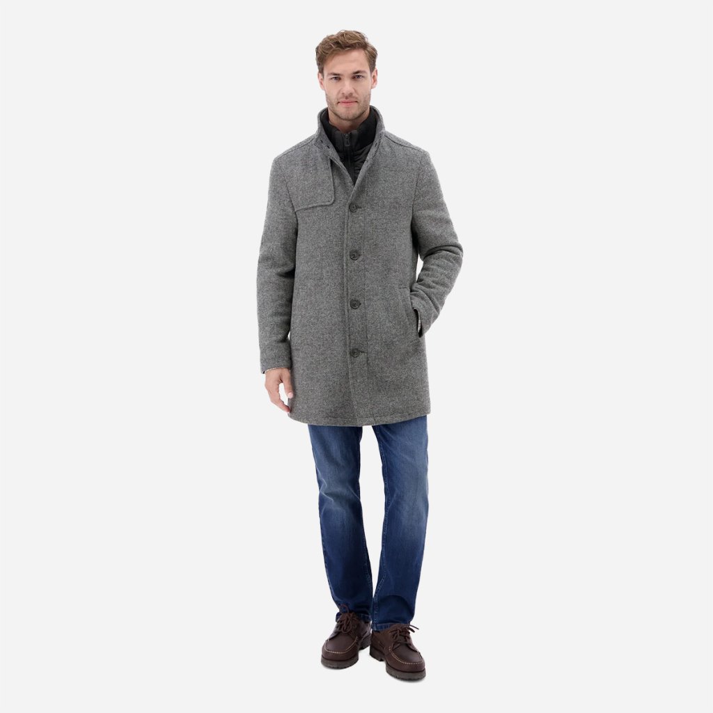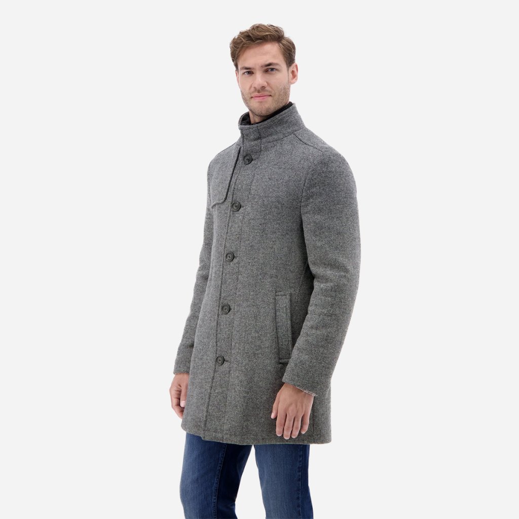 Pánsky kabát LERROS spája klasickú eleganciu s modernou funkčnosťou. Vďaka jemnej vlnenej optike pôsobí prémiovo, no zároveň si zachováva príjemnú ľahkosť a praktickosť pri nosení.