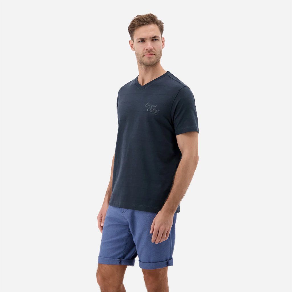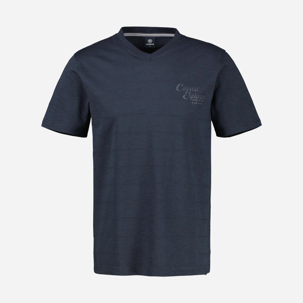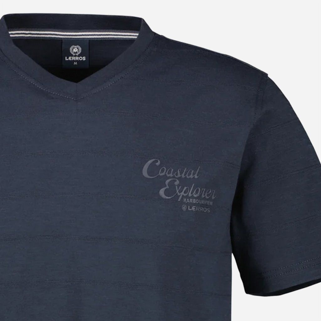Propracovaný design s jemným proužkovaným vzorem dodává tričku hloubku a eleganci. Žebrovaný výstřih do V opticky prodlužuje postavu a dodává outfitu moderní nádech. Celkový vzhled doplňuje vkusný potisk na hrudi, který podtrhuje ležérní charakter značky LERROS. Každý šev a detail svědčí o důsledném zpracování, které zaručuje, že vám tento kousek bude dělat radost dlouhou dobu.