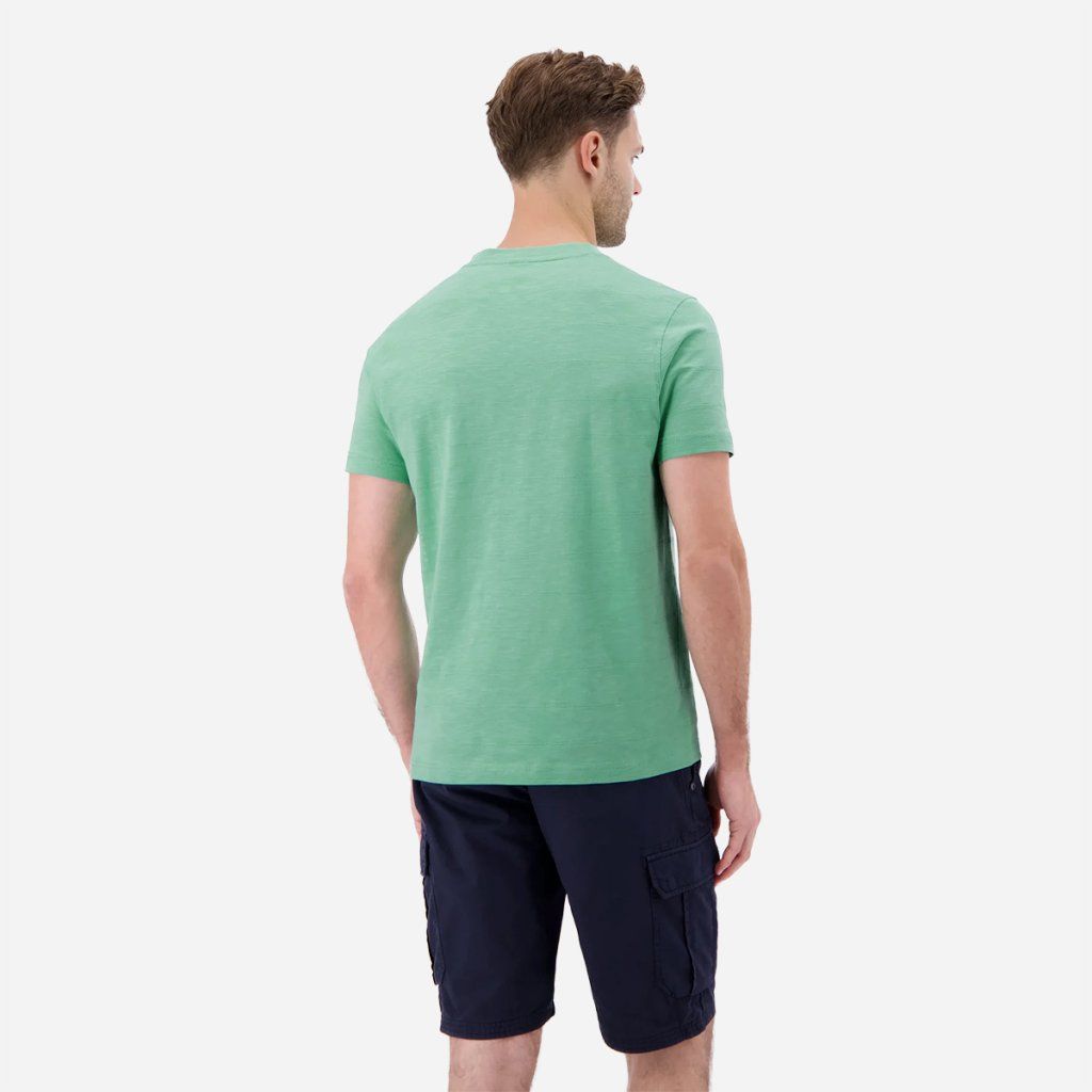 Propracovaný design s jemným proužkovaným vzorem dodává tričku hloubku a eleganci. Žebrovaný výstřih do V opticky prodlužuje postavu a dodává outfitu moderní nádech. Celkový vzhled doplňuje vkusný potisk na hrudi, který podtrhuje ležérní charakter značky LERROS. Každý šev a detail svědčí o důsledném zpracování, které zaručuje, že vám tento kousek bude dělat radost dlouhou dobu.